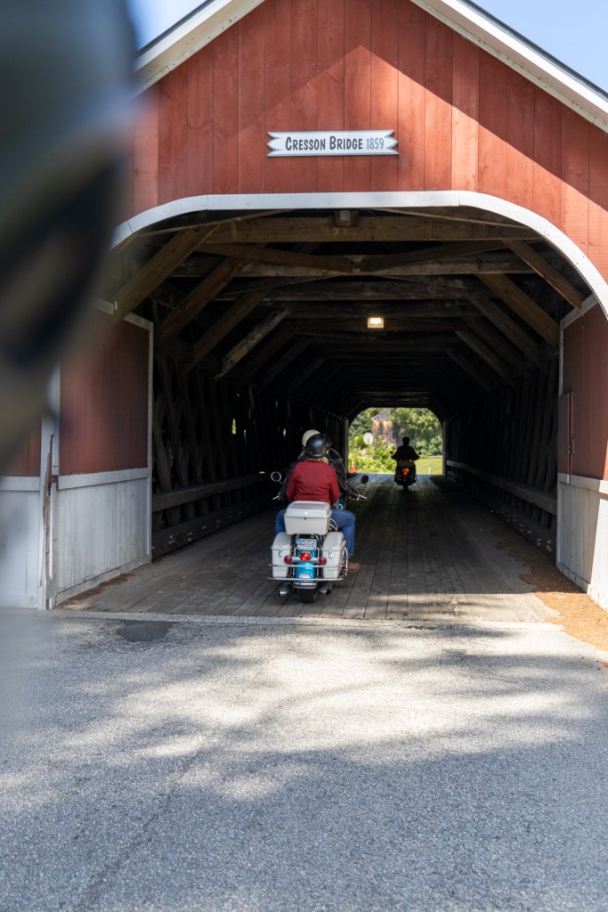 The Franklin County Fairgrounds in Greenfield, Massachusetts, was the hub of the July 28 to August 3, 2023 meet while the road run took approximately 85 riders through the Berkshire Mountains of Massachusetts, a string of covered bridges in Southern New Hampshire and some side trips to landmarks like Mt. Greylock, the Deerfield River campground, Winsor Dam and the Quabbin Reservoir and its lookout tower.