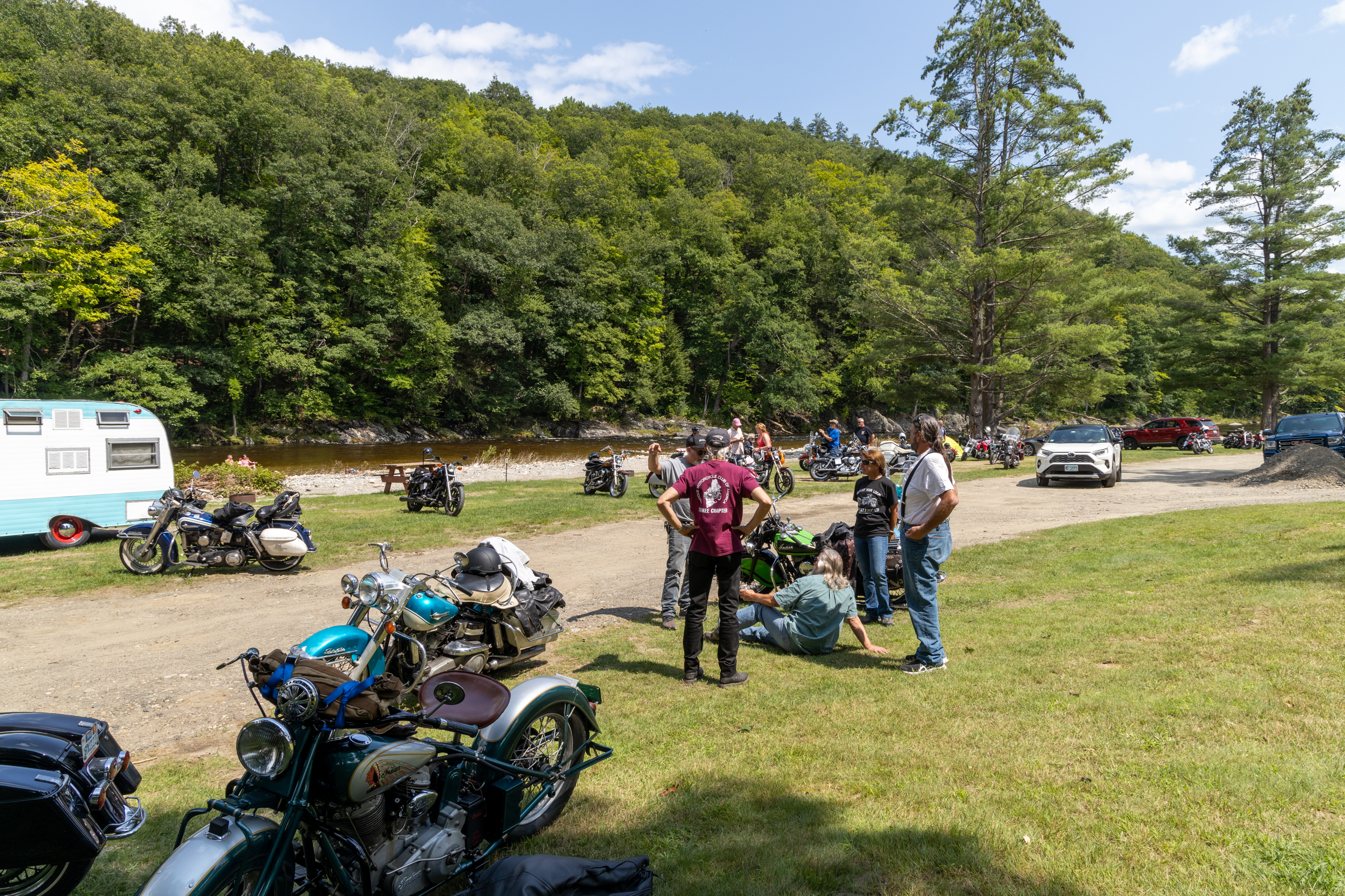 The Franklin County Fairgrounds in Greenfield, Massachusetts, was the hub of the July 28 to August 3, 2023 meet while the road run took approximately 85 riders through the Berkshire Mountains of Massachusetts, a string of covered bridges in Southern New Hampshire and some side trips to landmarks like Mt. Greylock, the Deerfield River campground, Winsor Dam and the Quabbin Reservoir and its lookout tower.
